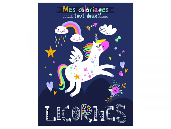 Avec sa couverture douce comme une licorne, ce livre de coloriage invite les petits crĂ©atifs en herbe rentrer dans leur monde merveilleux. Vous y trouverez 30 coloriages tendres et poĂ©tiques pour stimuler l’imaginaire des enfants et leur proposer des heures d’activitĂ© et de rĂŞve. Au dĂ©part, la licorne Ă©tait une crĂ©ature lĂ©gendaire, souvent associĂ©e Ă un univers magique ou féérique. C’est aussi un symbole porte-bonheur, qui nous permet de rĂŞver et d’apporter une note positive Ă notre quotidien.