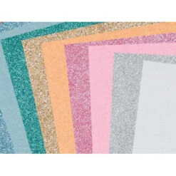 Ajoutez de la féerie dans vos créations avec le lot de 10 feuilles de caoutchouc mousse A4 – plaques pastelles à paillettes.