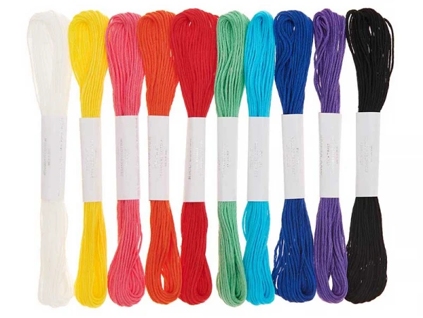 100% coton, 6 fils, 10 couleurs différentes, set « arc-en-ciel ».