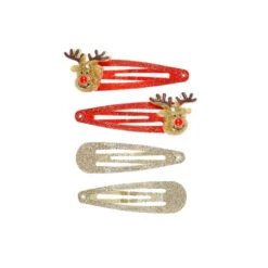 Faites vivre un conte de Noël à votre enfant avec ces 4 jolies barrettes Rennes et dorées !