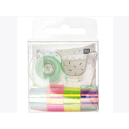 Ce lot de 5 mini masking tapes est très pratique et joli grâce Ă l’effet miroir multicolore.