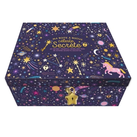 Ma boîte à secrets céleste d’Auzou est bien plus qu’un simple rangement : c’est un véritable coffre à trésors pour les enfants qui aiment les bijoux et les créations DIY ! Avec ses multiples compartiments et son allure étoilée, cette boîte à bijoux permet de garder bien en sécurité ses précieuses collections de bijoux, ses perles, et autres petites créations personnelles. Elle inspire autant à la créativité qu’au soin de ses trésors !