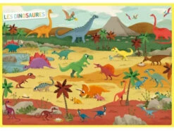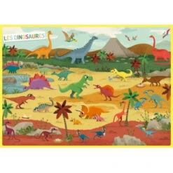 Sur son poster il pourra reconstituer des scènes et positionner les dinosaures dans leur environnement.