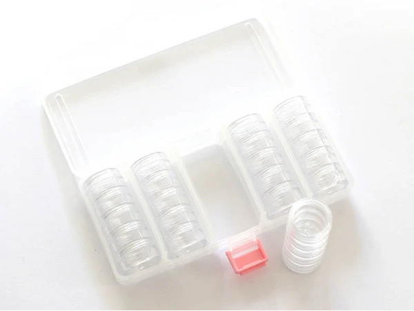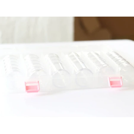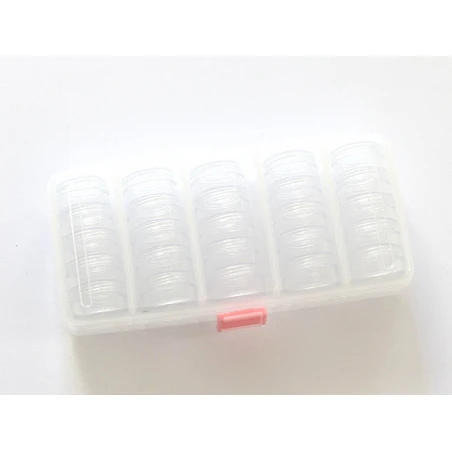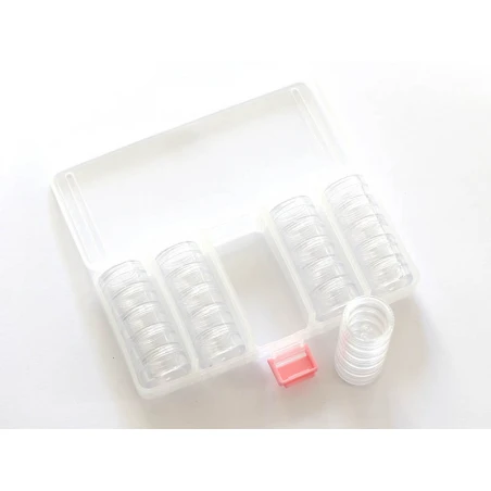 Une mallette de rangement avec ses 25 petites boites rondes; un indispensable pour toutes les créatrices de bijoux !