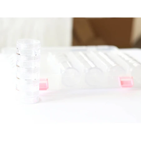 La mallette de dimensions 18,8 cm x 9,5 cm et haute de 3,5 cm pourra contenir toutes vos fournitures Ă bijoux. Que ce soit les perles miyuki; les perles rocailles; les embouts de tissages; les fermoirs; les anneaux, vous pourrez ranger absolument tout dans cette mallette grâce Ă Â ses 25 petites boĂ®tes qui se vissent entre-elles afin d’obtenir une tour de rangement. Vous pourrez ranger vos diffĂ©rentes fournitures par colonne ou rangĂ©e et ainsi trouver très facilement l’Ă©lĂ©ment dont vous avez besoin grâce Ă la transparence de la mallette.