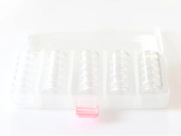 Une boĂ®te ronde peut contenir jusqu’Ă environ 850 miyuki, soit un tube de perles de 4,2 grammes.Â