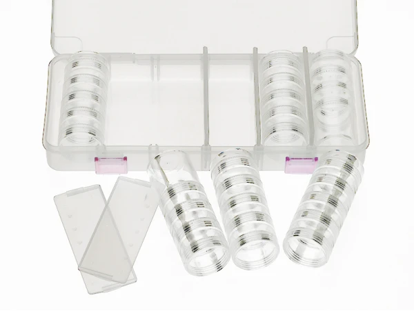 Une grande boite peut contenir jusqu’Ă environ 7650 miyuki, soit 9 tubes de perles de 4,2 grammes.Â