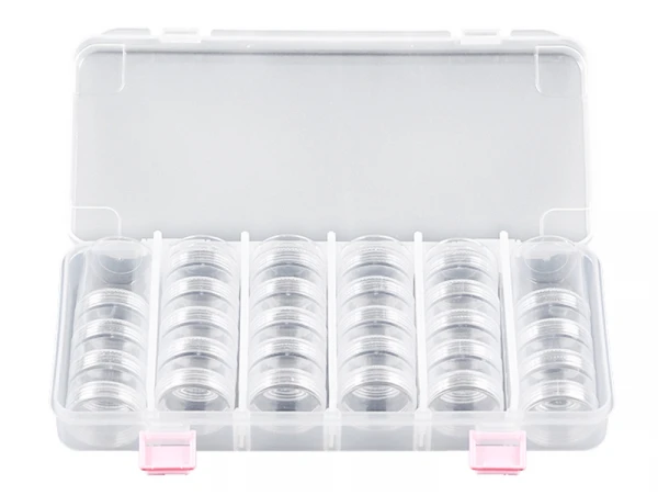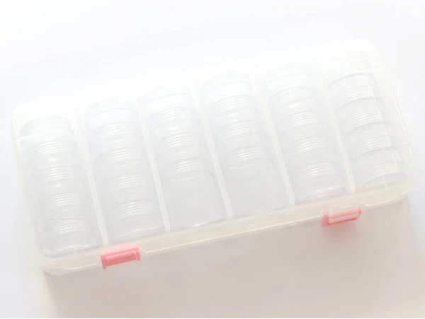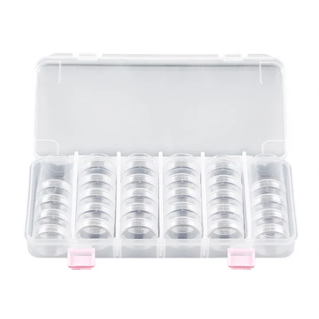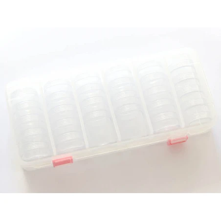 Une mallette de rangement avec ses 28 boites rondes; un indispensable pour toutes les créatrices de bijoux !