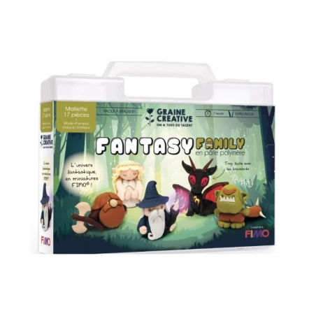 La Mallette Fimo Fantasy Family contient tous les outils et matériaux nécessaires pour créer des personnages enchanteurs :
