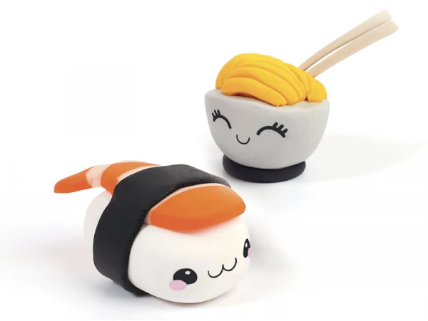 La pâte Fimo permet de rĂ©aliser toutes sortes de crĂ©ations : bijoux, accessoires, pendentifs, etc. La mallette Je fabrique mes sushis Kawaii en fimo vous permettra de confectionner d’adorables figurines avec cette pâte mallĂ©able et colorĂ©e. Au programme : un petit sushi et un petit bol rempli de dĂ©licieuses nouilles. Pratique, tout ce dont vous avez besoin pour rĂ©aliser ces belles crĂ©ations se trouve dans ce super kit. Pains Fimo, tapis de modelage et mĂŞme la spatule : il ne vous reste plus qu’Ă vous lancer !Â
