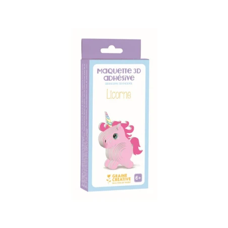 Cette maquette 3D adhésive en carton en forme de licorne de la marque Graine créative est parfaite pour tous ceux et celles qui adorent les créatures fantastiques et les maquettes en carton. Le petit plus : cette maquette est adhésive ! Idéale également pour vos enfants qui aiment faire des activités manuelles sans avoir besoin de colle, de scotch ni de vis.