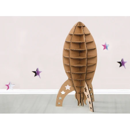 La décoration permet d’ajouter une touche personnelle à son intérieur. Et pourquoi ne pas partir sur une décoration écologique et réutilisable ? Avec cette maquette en carton, fabriquez une fusée en 3D en un rien de temps. Simple à fabriquer, vous n’aurez qu’à découper les pièces de leur support et les assembler entre elles. Pour vous aider dans votre démarche créative, une notice explicative est fournie.
