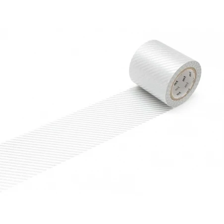 Fort du succès du masking tape traditionnel ( de 1,5 cm de largeur), la marque Kamoi Kakoshi à inventé le CASA. Ce masking tape Casa rayé argenté « stripe silver » est spécialement conçu pour la décoration intérieure, il est beaucoup plus large que la version classique, puisqu‘il mesure 5 cm de large.