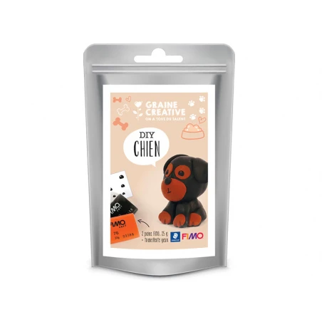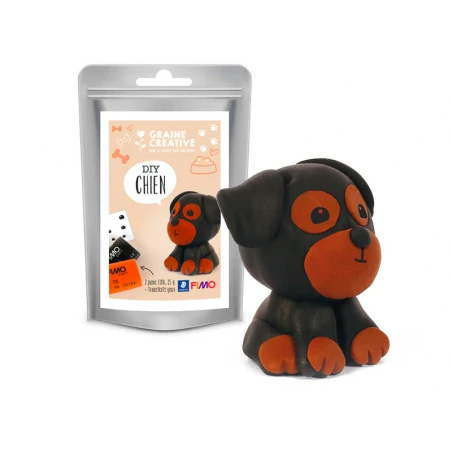 Si vous dĂ©butez dans la confection d’objets en pâte polymère, ce kit devrait vous plaire. Il contient tout le nĂ©cessaire afin de fabriquer un sublime animal de compagnie en pâte Fimo. A l’aide de deux pains de Fimo noir et marron et d’un livret pour suivre les Ă©tapes pas Ă pas, vous pourrez fabriquer en un rien de temps un petit chien.Â