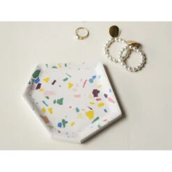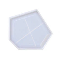 Ce moule vous permettant de réaliser un coupelle en forme d’hexagone irrégulier mesure 14,3 cm (plus grande longueur) et 1,2 cm de hauteur.