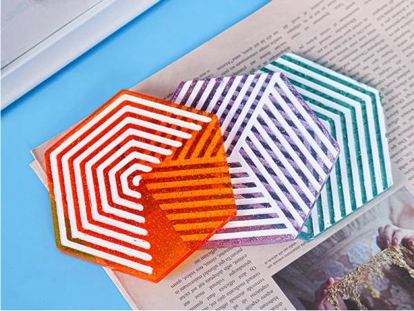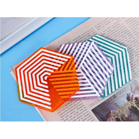Vous ĂŞtes fans de jesmonite et de rĂ©sine ? Avec ce petit moule hexagonal, vous allez pouvoir crĂ©er de jolis dessous de verre. A vous de choisir si vous souhaitez y intĂ©grer de la couleur, des perles, des fleurs pressĂ©es ou d’autres petites dĂ©corations dans vos diffĂ©rents dessous de verre !Â