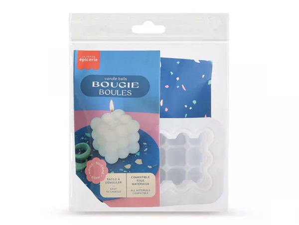 Vous êtes fans de bougies ? Avec ce moule en silicone en forme de bougies boules de La Petite Épicerie, vous allez pouvoir créer de jolies bougies pour décorer votre intérieur. Pour réaliser des bougies, percez à l’aide d’une aiguille fine le moule en silicone, pour faciliter l’insertion de la mèche. Ajoutez ensuite une fragrance pour parfumer votre bougie !
