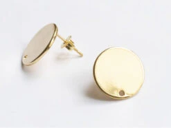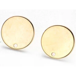 Boucles d’oreilles en laiton, avec plaque plate, avec broches en acier inoxydable, sans nickel, rond plat, véritable plaqué or 18 carats, 15 mm, trou: 1,2 mm, broche: 0,8 mm