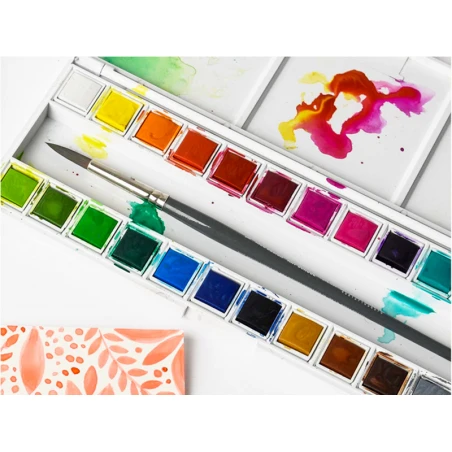 Avec cette grande palette de 24 demi-godets d’aquarelle aux couleurs brillantes et profondes, réalisez de magnifiques créations.