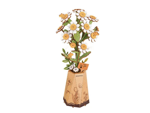 DĂ©couvrez notre gamme complète de puzzles 3D pour plus d’inspiration et de crĂ©ativitĂ©. Et pour parfaire votre dĂ©coration florale, explorez notre sĂ©lection de bouquets artificiels qui se marieront Ă merveille avec votre camomille en bois.