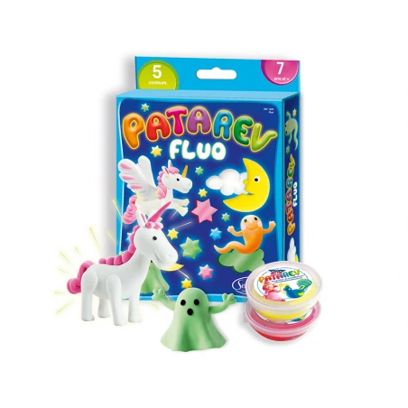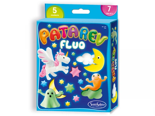 – 4 pots de Patarev 18 g fluorescents : jaune – vert – rose – bleu