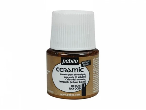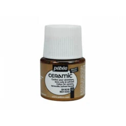 Ce petit flacon de 45ml contient de la peinture céramique, couleur or riche. Idéale pour un travail sur de la terre cuite, de la faïence, de la céramique … elle se travaille au pinceau, à l’éponge, au pochoir, … Sa couleur est opaque et très brillante, lui conférant une bonne tenue lumière.