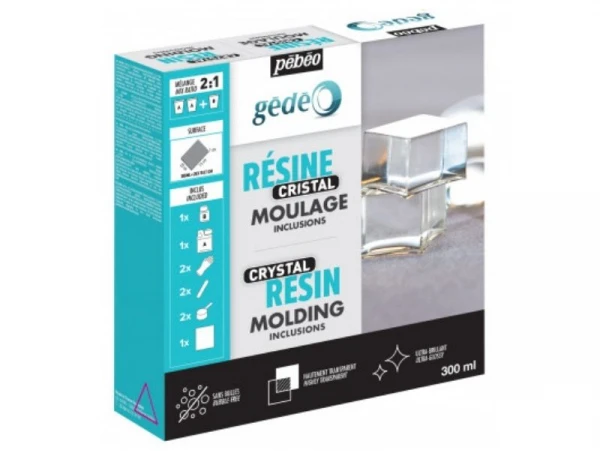 La résine transparente cristal de gédéo vous permet de réaliser moulages, inclusions jusqu’à 5cm d’épaisseur, enrobages, ou stratifiés. Transparente et solide, elle imite parfaitement la pâte de verre.