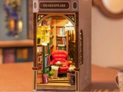 Vous trouverez dans ce kit tout ce dont vous avez besoin pour créer de toute pièce cette pièce miniature. Des morceaux de tissu, des petits éléments en papier, des outils en métal et bien d’autres éléments sont à retrouver au sein de ce kit 100% DIY. Dans cette jolie librairie, les étagères, les lumières et les détails sont à observer avec attention une fois assemblés. Prêt à aller dénicher votre futur livre ?