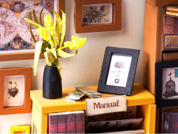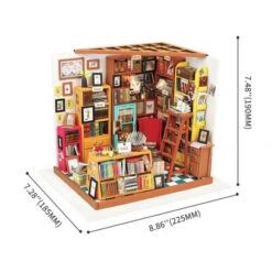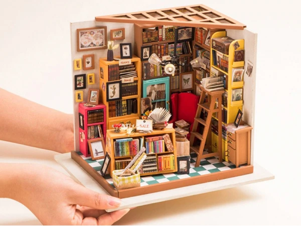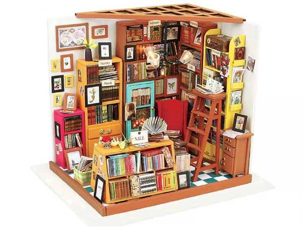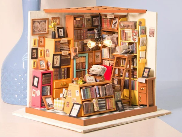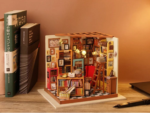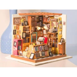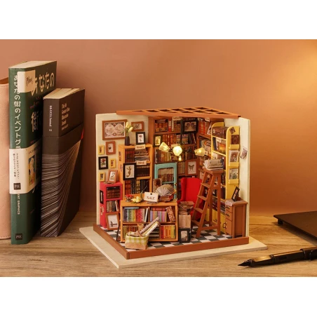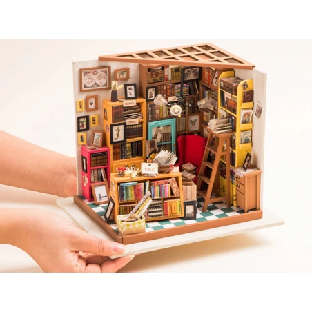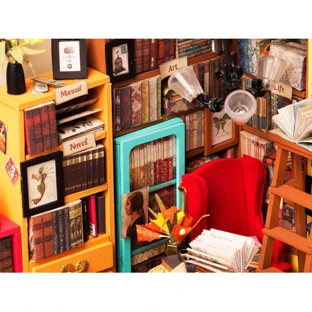 Qui ne craquerait pas devant cette étude haute en couleurs ? Les dizaines de livres, les couleurs et les petits détails font tout le charme de cette étude qui s’illumine ! Cette étude de Sam, de la marque Robotime Rolife, va vous transporter dans un univers vintage emprunt de l’odeur des livres. Mais avant d’en arriver ici, patience et rigueur vont être de mises pour construire entièrement cette étude, à coup de peinture, de colle et de découpage.