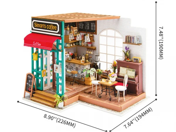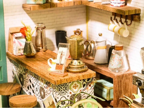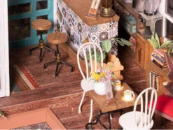 Vous trouverez dans ce kit tout ce dont vous avez besoin pour créer de toute pièce cette scène miniature. Des morceaux de tissu, des petits éléments en papier, des outils en métal et bien d’autres éléments sont à retrouver au sein de ce kit 100% DIY. Dans ce magnifique café, petites tasses, plantes, livres, devanture et meubles sont à observer avec attention une fois assemblés. On aurait presque envie de retrouver ce charmant café de quartier en bas de chez nous et y prendre un cafe latte ou un thé tous les jours !