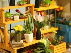Vous trouverez dans ce kit tout ce dont vous avez besoin pour créer de toute pièce cette serre miniature. Des morceaux de tissu, des petits éléments en papier, des outils en métal et bien d’autres éléments sont à retrouver au sein de ce kit 100% DIY. Dans cette jolie serre, petites plantes, fleurs, vases, porte-fleurs, caisses à claire-voie, armoires en bois, boîtes à papier, cadres photo, pelles, balai et tableaux sont à observer avec attention une fois assemblés.