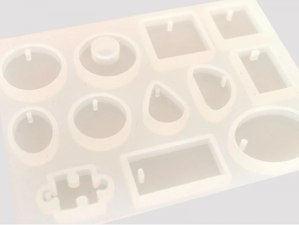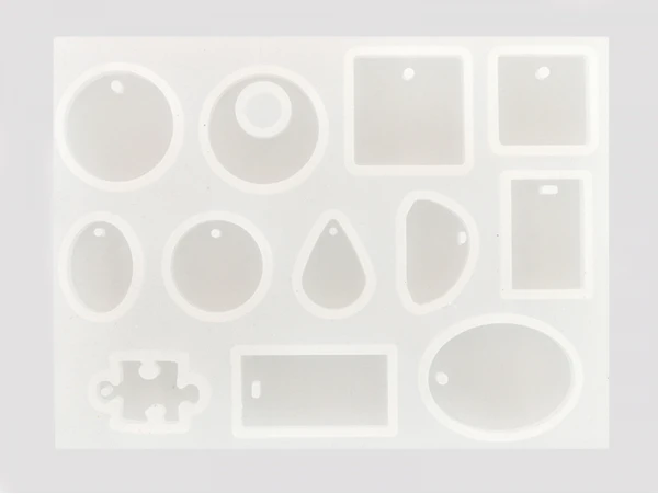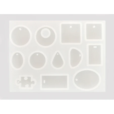 Une planche avec 12 moules de diffĂ©rentes formes pour crĂ©er une multitudes de pendentifs.Â