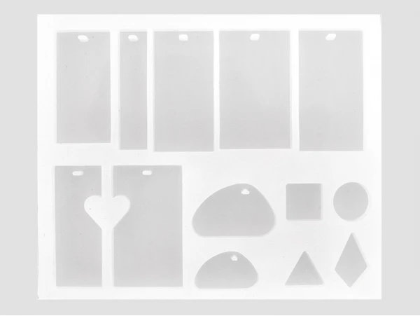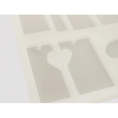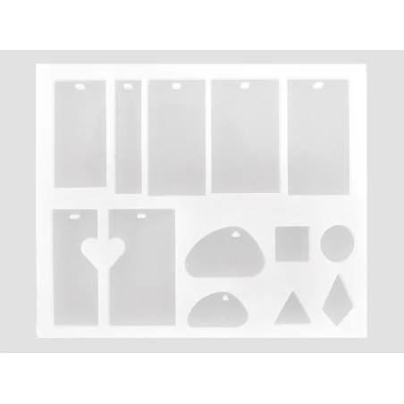Une planche avec des moules de diffĂ©rentes formes pour crĂ©er une multitudes de pendentifs.Â
