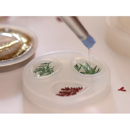 La rĂ©sine d’inclusion : La rĂ©sine Ă©poxy d’inclusion est idĂ©ale pour des crĂ©ations de grandes Ă©paisseurs. Elle est totalement transparente et rĂ©sistante aux chocs et aux UV. Elle est utilisĂ©e aussi bien pour faire des bijoux moulĂ©s, des fonds de plateaux, des presse-papiers, … Elle s’utilise pour des inclusions entre 5 mm et 10 cm d’Ă©paisseur.Â