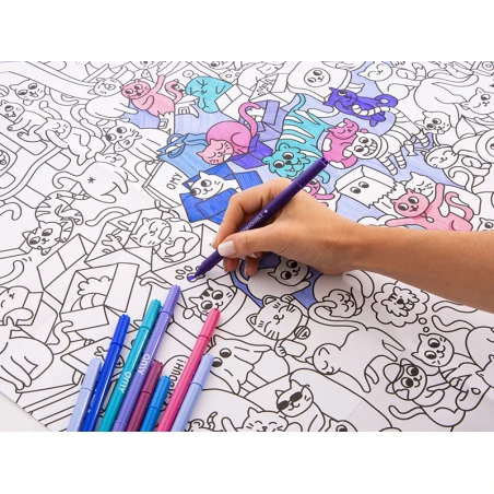 Ce poster géant offre un formidable terrain de jeu pour laisser libre cours à l’imagination. Que ce soit étalé au sol, sur une table ou accroché au mur, cet espace artistique sans limites permet aux enfants de développer leur créativité tout en s’amusant. La multiplicité des détails à colorier garantit des heures d’activité captivante.