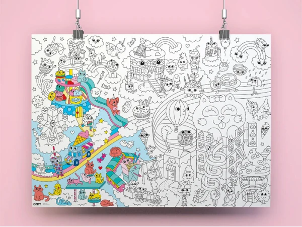 Poster géant Kawaï OMY : « Un monde super mignon à colorier ! »