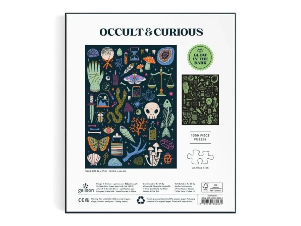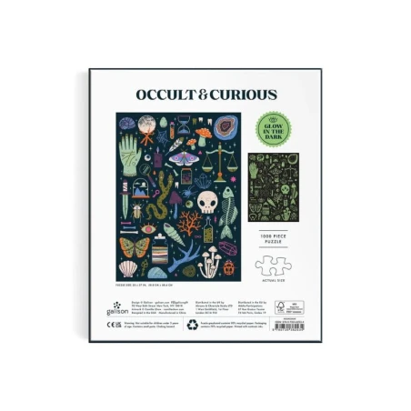 Plongez dans un univers mystique et énigmatique avec le Puzzle Occult and Curious (1000 pièces), une création fascinante et luminescente de Galison. Ce puzzle dévoile un cabinet de curiosités mêlant artefacts occultes, grimoires anciens et objets mystérieux, tous baignés dans une atmosphère surnaturelle.
