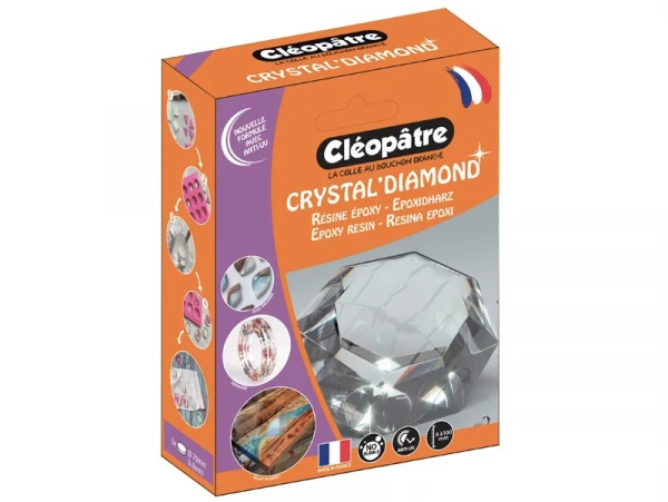 La résine Crystal’Diamond est une résine époxy d’inclusion. Elle est idéale pour les créations de grandes épaisseurs. Elle est totalement transparente, résistante aux chocs et aux UV. Elle est utilisée aussi bien pour faires des bijoux moulés, des fonds de plateaux,…