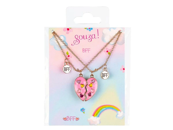 Ce set de 2 jolis colliers Best Friends Forever en forme de cĹ“ur est parfait pour votre enfant. Ces colliers de la marque Souza conviendront aux enfants dès 3 ans qui adorent les colliers et qui ont envie d’offrir un des colliers Ă sa ou son meilleur ami. Votre bambin pourra soit le porter quotidiennement ou pour des occasions particulières. Chaque collier est composĂ© d’une chaĂ®ne, de la moitiĂ© d’un cĹ“ur rose et d’une breloque avec Ă©crit BFF ! Les couleurs viendront ajouter une touche de pep’s Ă la tenue de votre enfant ! Il n’aura qu’Ă l’enfiler autour du cou et de l’enlever quand il veut !