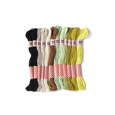 20 couleurs dont 2 écheveaux noirs et deux blancs