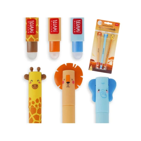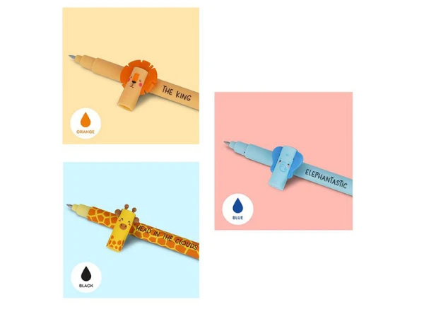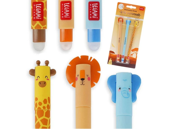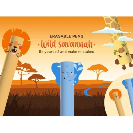 Avec le Set de 3 Stylos à Encre Gel Effaçable – Savane Sauvage, partez explorer les terres africaines aux côtés de compagnons aussi adorables que malins. Lion, éléphant et girafe vous accompagnent pour rendre chaque prise de notes ludique et colorée !