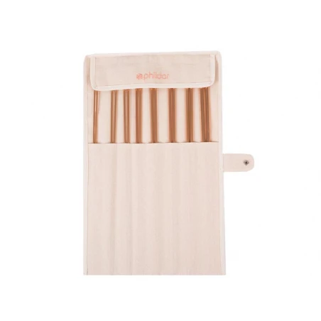 Les aiguilles Phildar sont contenues dans une belle pochette en tissu refermable avec un bouton pression. Les 8 paires d’aiguilles mesurent toutes 40 cm de longueur, idĂ©al pour tricoter des ouvrages courts et longs comme des Ă©charpes ou des bonnets.