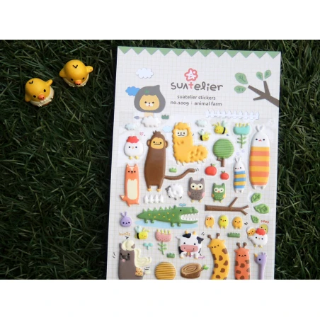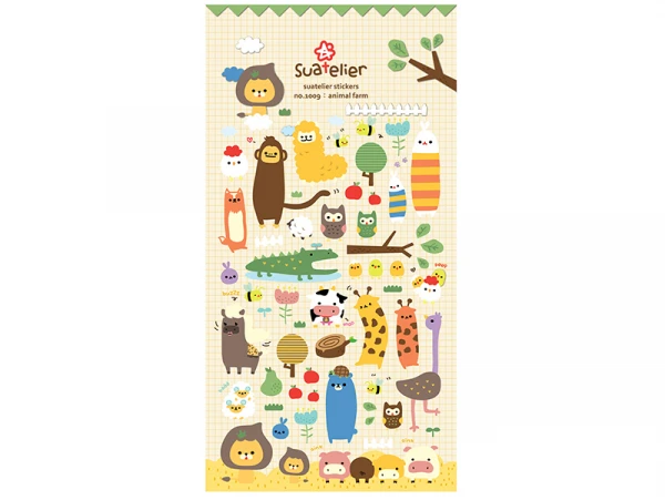 La majoritĂ© de ces stickers ont un cĂ´tĂ© rĂ©aliste qui se marie superbement bien avec la parodie. Du reste, une majoritĂ© d’animaux y sont reprĂ©sentĂ©s. Il s’agira notamment de l’autruche, des poussins, du crocodile, du coquin hiboux, des sympathiques moutons, des majestueux lions, des cochons mais aussi du renard, du singe, du lapin, des abeilles et des girafes. On aime particulièrement le choix et la qualitĂ© de ce magnifique lot de quarante stickers.