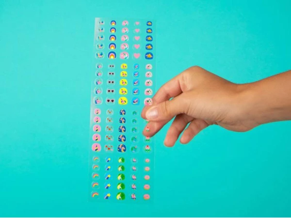 Les stickers pour les ongles sont la nouvelle tendance du moment en nail art. Facile Ă mettre, ils apportent tout de suite une touche de fantaisie et d’originalitĂ© ! Ces 200 stickers Lily aux couleurs pep’s et aux formes variĂ©es de la marque Omy sont parfaits pour ceux et celles qui souhaitent dĂ©corer leurs ongles immĂ©diatement sans avoir Ă aller chez une prothĂ©siste ongulaire. Ni une, ni deux, dĂ©collez les gommettes de votre choix et venez les placer sur les ongles choisis. Vous aurez le choix. Vous trouverez ainsi des lunettes de soleil, une licorne, un arc-en-ciel, un donut, une Ă©toile filante et pleins d’autres stickers tous super mignons !