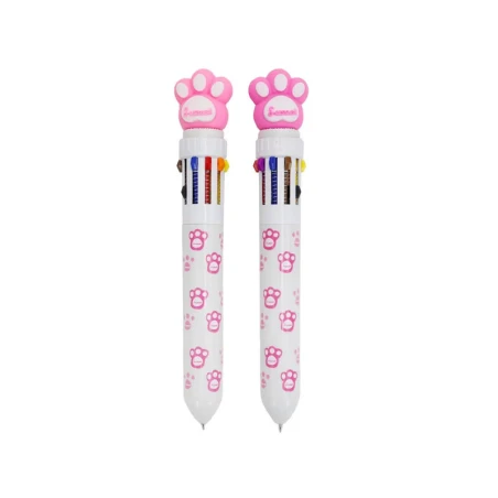 Craquez pour ce stylo rose de dix couleurs avec une patte de chat trop mignonne !