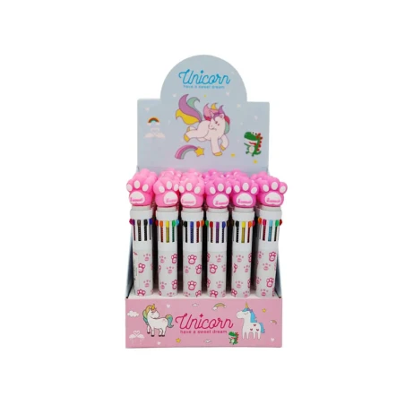 DĂ©couvrez ce superbe stylo de dix couleurs de la marque Cap Zone ! Un stylo Ă©pais, en plastique colorĂ© qui bien sĂ»r est rempli de fantaisie … la surprise, la patte de chat de couleur rose trop mignonne situĂ© sur le dessus du stylo ! Ce stylo 10 couleurs permettra Ă votre petit crĂ©atif de colorier ou Ă©crire en rose, en bleu, en vert, en violet, en jaune, en orange, en bleu ou encore en noir !