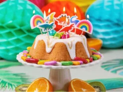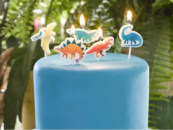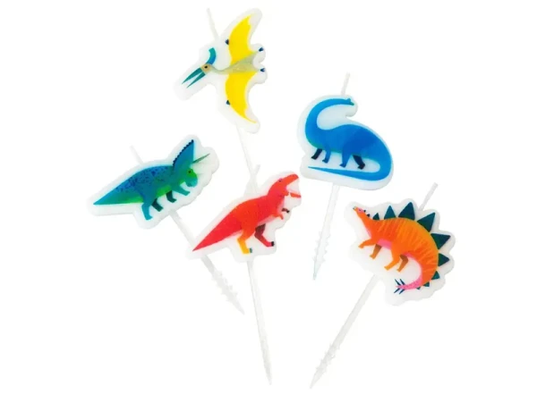 Anniversaire rime bien Ă©videmment avec gâteau ! Pour rĂ©aliser le plus joli des gâteau d’anniversaire, il suffit d’une touche d’originalitĂ© bien orchestrĂ©e ! Ces adorables 5 bougies dinosaures avec leur corps de reptiles feront leur effet. Avec leurs couleurs acidulĂ©es vous pourrez rĂ©aliser un gâteau clair et le parsemer de petits bonbons de sucre colorĂ©s ou bien les disposer directement sur un gros gâteau au chocolat !Â