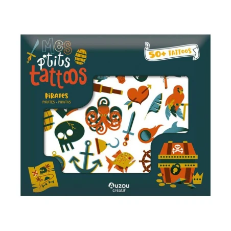 Les tatouages font le bonheur des enfants, filles comme garçons. Ces planches de tatouages sur le thème des pirates de la marque Auzou vont forcĂ©ment faire le bonheur de votre bambin. Le style colorĂ©, accentuĂ© par des ombres, les tatouages sont parfaits pour les beaux jours et l’Ă©tĂ© qui arrive. Faciles Ă utiliser, tous les tatouages sont facilement dĂ©collables pour aider votre enfant Ă prendre les tatouages qu’ils prĂ©fèrent. Parmi ces 50 tatouages, votre bambin pourra trouver des Ă©pĂ©es, un coffre-fort, un perroquet, un gouvernail, un crâne ou encore une ancre.Â