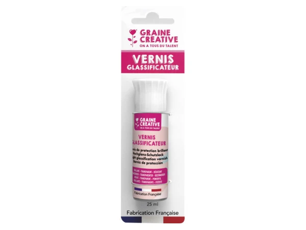 Lorsque vous faites des crĂ©ations en rĂ©sine, en jesmonite ou mĂŞme en pâte Fimo, il faut penser Ă les protĂ©ger ! Si vous peignez vos crĂ©ations ou qu’elles sont en contact avec de l’eau, ce vernis glassificateur de 25 ml de la marque Graine crĂ©ative est parfait pour vous afin que votre peinture ne s’Ă©caille pas ! Avec un rendu brillant et transparent, vos crĂ©ations seront protĂ©gĂ©es des chocs mais Ă©galement des tâches, par exemple si vous faites des dessous de verre en rĂ©sine ou en pâte Fimo.